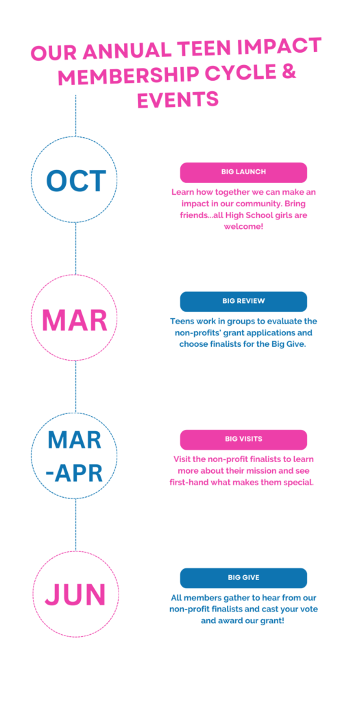 Membership for the 2025-2026 school year is now open! If you are a rising 9th, 10th, 11th or 12th grader, please consider joining (or rejoining) our teen giving circle. The deadline to join is December 31, 2025.